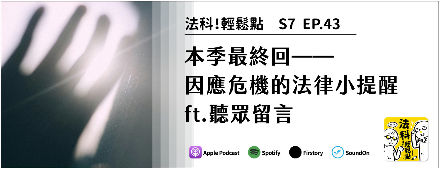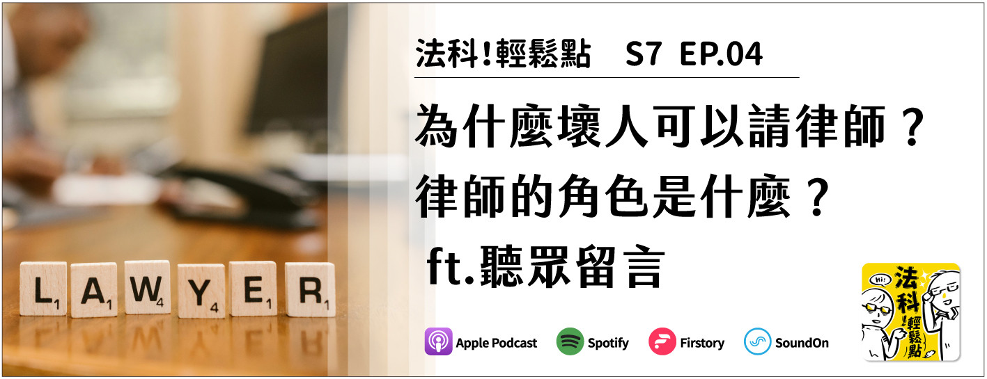 法律百科也可以用聽的!聽Yt和Henry⽤淺⼊淺出的⽅式,聊你我⽣活中遇到的法律⼤⼩事。