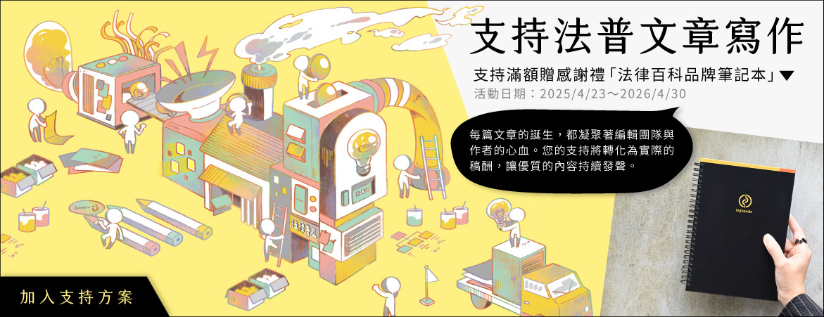 支持法律百科 法律普及如同一場馬拉松,誠摯邀請您加入支持者的行列,提供我們實質的幫助,讓我們繼續跑下去。
