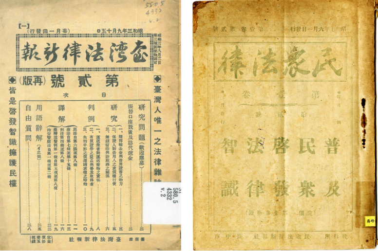 1928年創刊發行的《臺灣法律新報》是臺灣首部民間法律專業刊物,利用解釋判例、六法、法律用語等,以及質問的方式,讓民眾一讀瞭然。 1932年創刊發行的《民眾法律》,則務求簡明、實用、趣味,主要推廣與民眾生活相關的法律知識。 法律百科期許自己與前輩一樣,具備推廣知識的熱情, 降低法律門檻,引起興趣,讓民眾一看就懂!