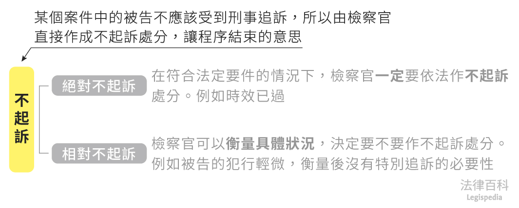 的情況下,終結程序的方式。意思是指某個案件中的被告不應該受到刑事追訴,所以由檢察官直接作成不起訴