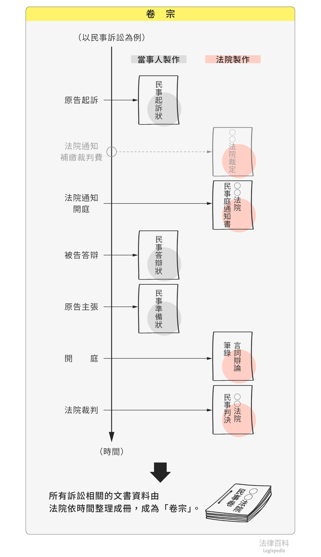 與案件有關的內容整理成一本的文件,內容包含訴狀、相關