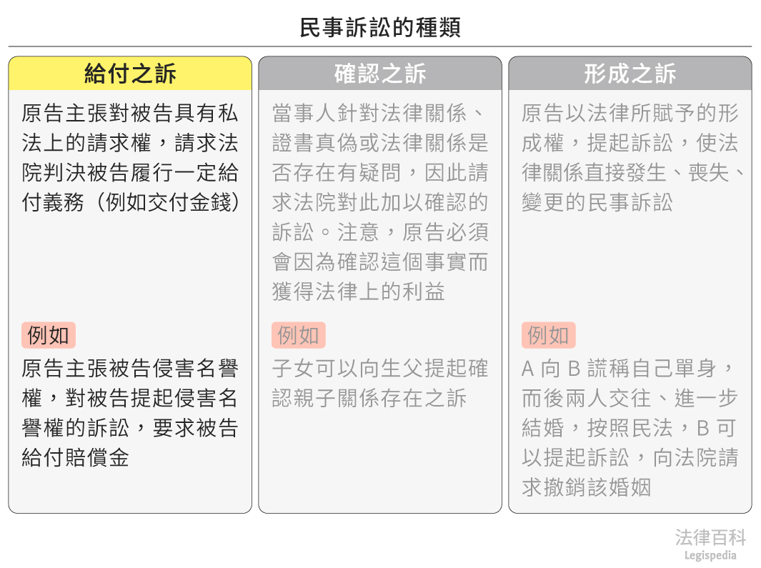 圖1 給付之訴||資料來源:本辭典內容 / 繪圖:Yen
