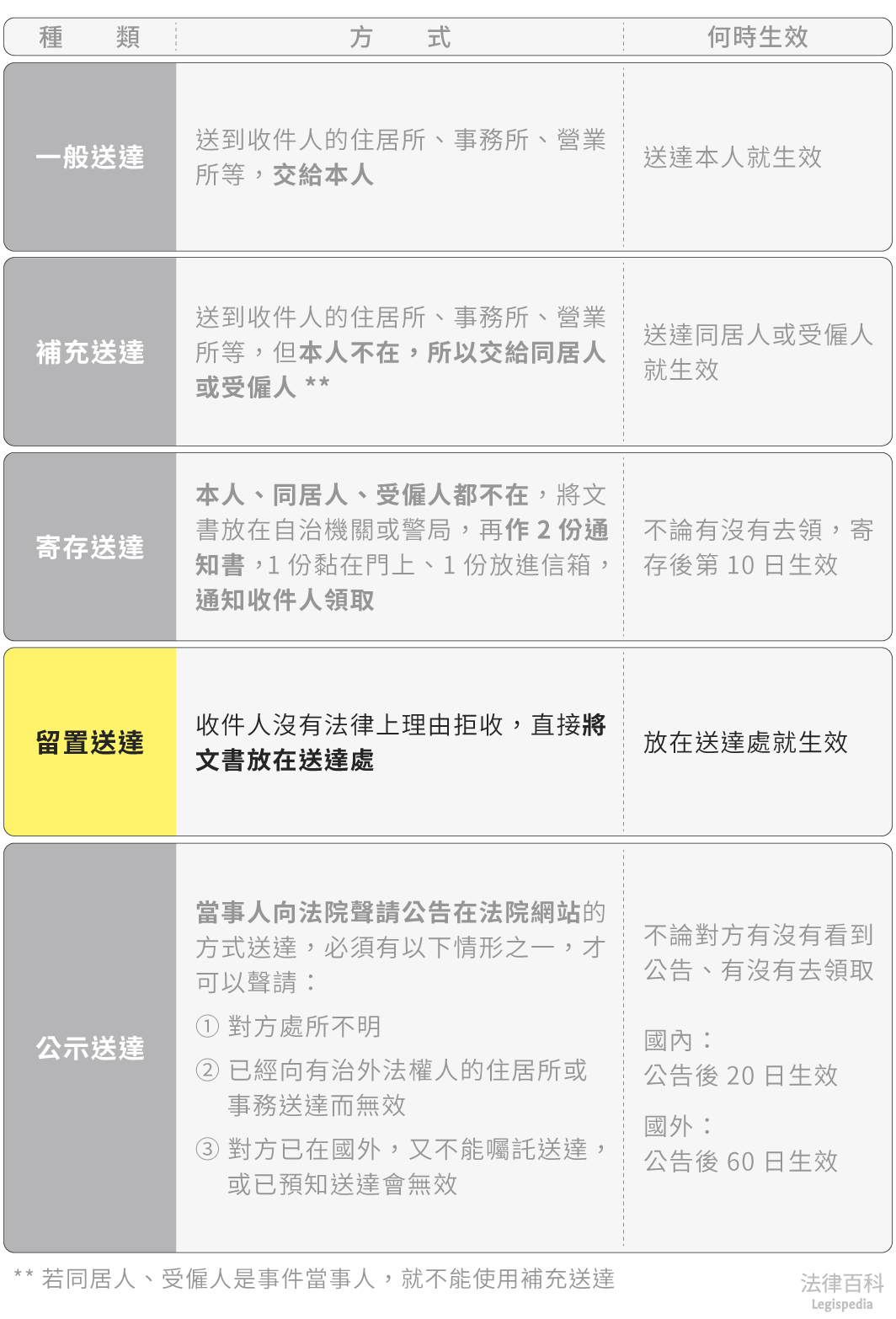 I 應受送達人拒絕收領而無法律上理由者,應將文書置於送達處所,以為送達。