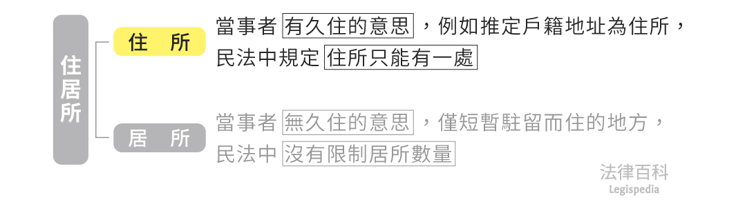:「顯見我國民法關於住所之設定,兼採 主觀主義及客觀主義之精神,必須主觀上有久住一定地域之意思,客觀上 有住於一定地域之事實,該一定之地域始為住所,故住所並不以登記為要 件,戶籍登記之處所固得資為推定住所之依據,惟倘有客觀之事證,足認 當事人已久無居住該原登記戶籍之地域,並已變更意思以其他地域為住所 者,即不得僅憑原戶籍登記之資料,一律解為其住所。」