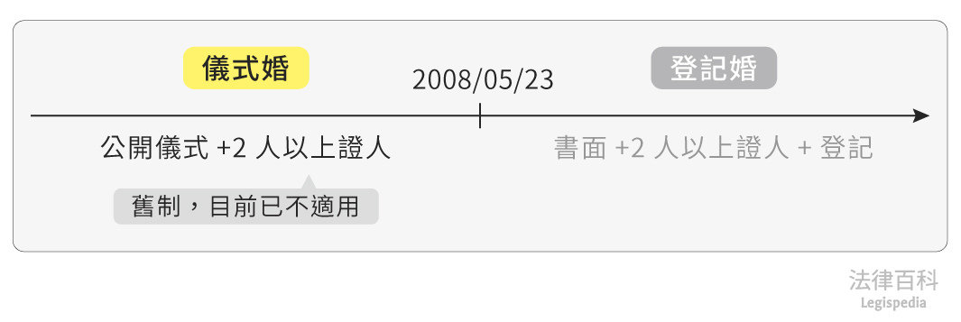 以公開儀式及二人以上證人為婚姻要件的制度,因為民法第982條已修正改採登記婚[1],本制度自2008年5月23日後不再適用。