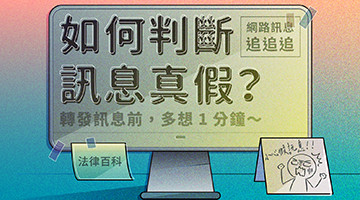 上網搜尋需要的資訊,在今天是非常普遍的行為。然而搜尋到的結果究竟是不是值得信賴呢?尤其在社群網站、通訊軟體上有許多訊息傳來傳去,遇到假訊息除了可能會因此被誤導之外,轉傳還可能會踩到法律紅線喔!看到訊息該如何查核?怎麼決定要不要轉發呢?箇中玄機待法科報你知!