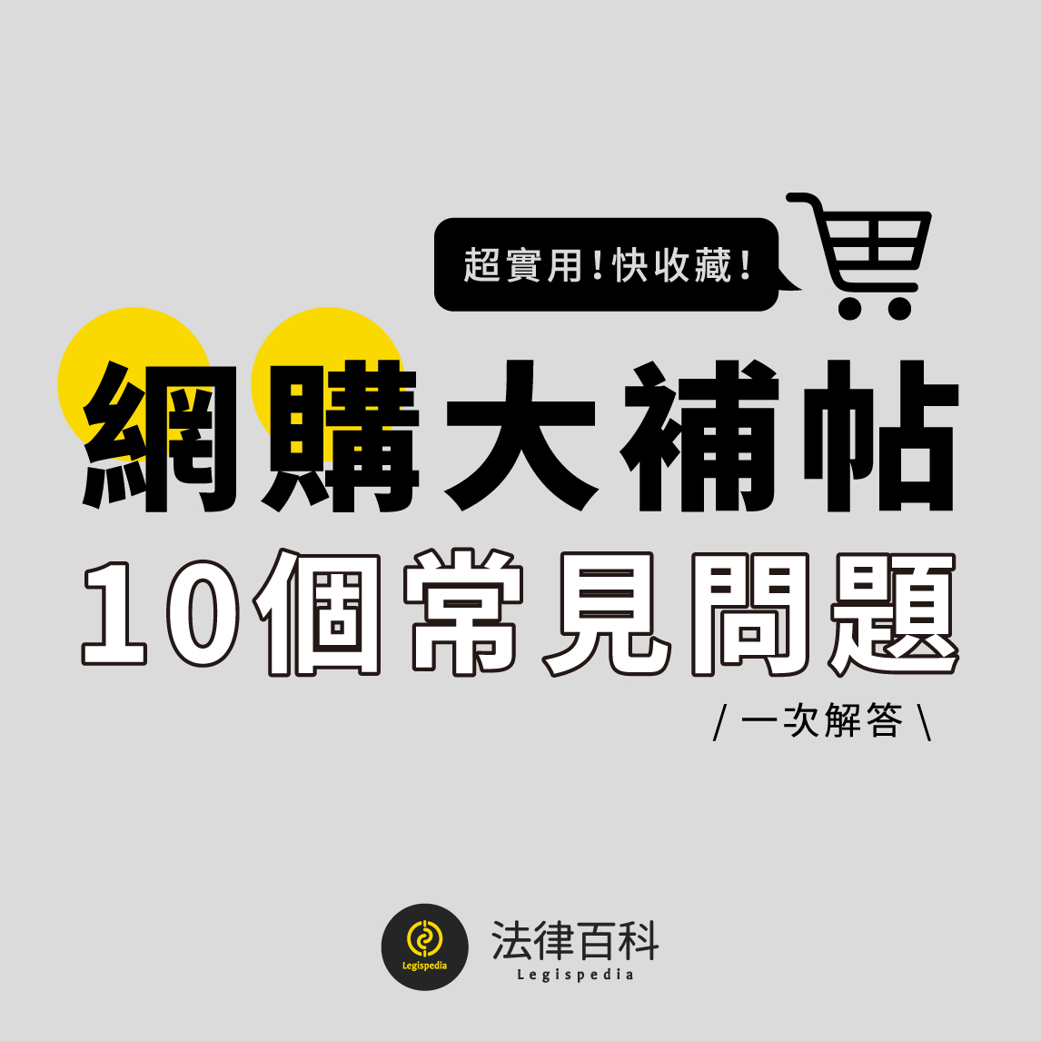 網路購物經常產生消費爭議,因此我們為大家準備了「網購大補帖」,讓你一次快速掌握10個網購的法律知識~ 保證實用!馬上收藏,並分享給家人、朋友吧!