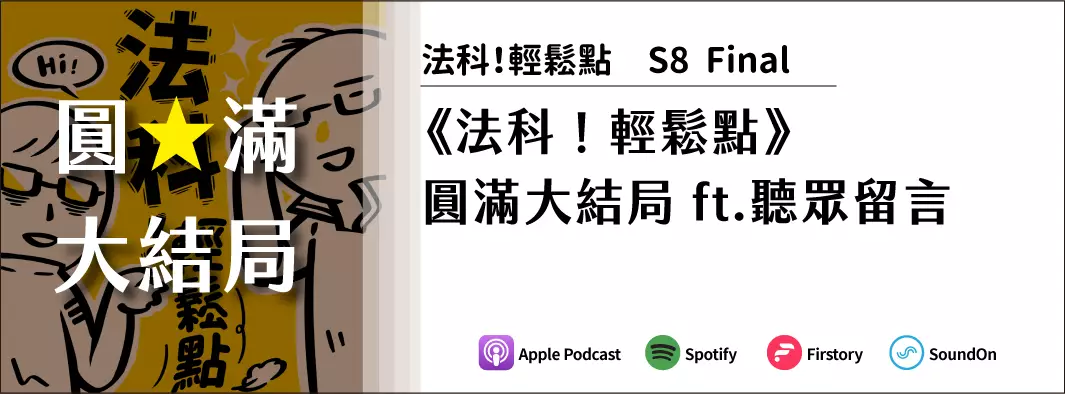自《法科!輕鬆點》第00集自介集於2021年1月12號上架以來,走過了5年多,對主持人來說也是難以想像的一段旅程。在這超過200集的節目中,也累積了不少的收聽數,且透過聲音與聽眾朋友們結下寶貴的緣分。
