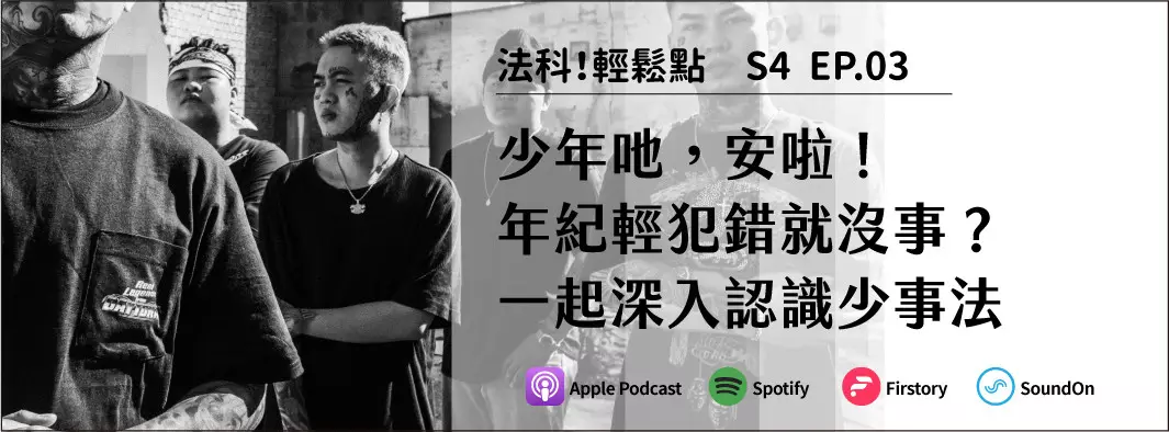 聽這集節目歡迎佐以下推薦電影: 《牯嶺街少年殺人事件》、《少年吔,安啦!》、《發條橘子》、《母子情劫》、《飛行少年》 今年金馬奇幻影展即將在4月8號陸續上映多部好片,包含臺灣黑幫電影經典《少年吔,安啦!》。內容描繪正值年輕氣盛的兩位少年流連於卡拉OK與撞球間,打架吸毒是家常便飯,「小混混」是他們在人們眼中的樣貌。兩人原本無所事事的生活因為兩把手槍,一步步深陷盤根錯節的幫派惡鬥中。從電影中可以窺見那些現實中少年暴力與街頭犯罪的問題。 在臺灣,12到18歲的少年做了壞事、或者是有偏差行為的時候,就會進入少年事件處理法來處理,也就是常聽到的少事法。考量到這時少年的心智發育狀態,少事法會優先以「保護」而不是「處罰」的方式來幫助少年面對問題、成長發展。然而當國內外發生駭人的少年犯罪案件時,總引起「為什麼年紀小就可以罰得比較輕?」的討論。在這集裡,我們將一起認識少事法,並從一部部影視作品中看見被問題困住的少年們。 - 【我們聊了這些】 .00:00 多虧小屁孩,讓Yt也翻起全國法規資料庫 .04:10 小孩犯錯不就該吊起來打嗎?特別有個少事法幹嘛? .13:30 轟動社會的少年犯罪事件:日本少年A、電影《牯嶺街少年殺人事件》 .18:15 犯錯的少年在法律裡會受到什麼對待呢? .38:10 輪到我們話說當年血氣方剛的校園生活 .41:03 「年紀輕」是可以減輕處罰的無敵星星嗎? - 【聽完還想更了解,你還可以用看的】 .有了刑法,為何需要少事法?淺談少事法立法目的︱作者:司法流言終結者 .認識少年保護管束制度(一)──保護管束的概念、對象與方法︱作者:黎勝文 .認識少年保護管束制度(二)--保護管束的期間與救濟︱作者:黎勝文 .少年保護事件中的被害人到庭陳述意見權︱作者:司法流言終結者 - /// 關於 法科!輕鬆點 /// 法律百科的好搭檔,Yt與Henry,⼀位看似跟法律沾不上邊的插畫設計師,⼀位想講專業知識卻⼜忍不住說冷笑話的法律編輯,⽤淺⼊淺出的⽅式,聊你我⽣活中遇到的⼤⼩事,偶爾偷渡⼀些法律冷知識。 這裡不會有⻑篇⼤論的法律深究(因為Yt也會聽不下去咳咳咳),只有輕鬆有趣的有料對談。 法律有沒有那麼難,「法科!輕鬆點!」 歡迎與我們分享您的收聽感想,無論是⿎勵、建議,或節⽬主題的許願,請填寫給製作團隊的⼩紙條,將您的想法都告訴我們吧! 除了在法律百科網站上收聽,您還可以在以下管道中直接訂閱《法科!輕鬆點》: Apple Podcast、Spotify、Firstory、SoundOn、Google Podcast、KKBOX - 節⽬⽚頭⽚尾⾳樂來源:"And Just Like That" Written by Bryan Teoh.