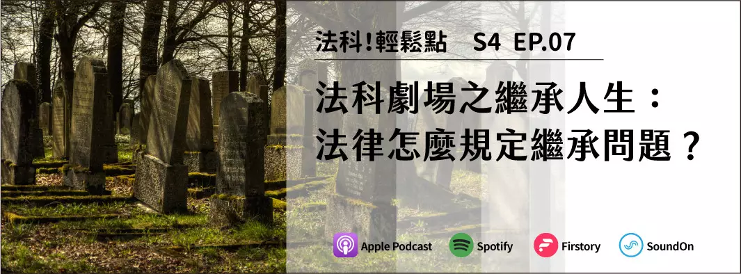 【我們聊了這些】 .00:00 閒聊時間:法律問題的量子糾纏 .06:30 誰是繼承人?談繼承人的順位與難題 .20:39 談錢不一定傷感情--繼承人可以分到多少遺產? .28:05 朕不給的,你不能要?喪失繼承權怎麼回事? .36:11 一人一半感情不會散--遺產分割大哉問 .40:23 學會放棄人生更亮麗--法定限定繼承與拋棄繼承