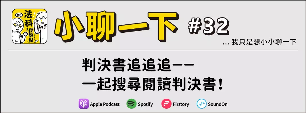 本集節目中,主持人Yt與Henry將從判決書的查詢與閱讀出發,帶各位聽眾朋友「用聽的也能知道怎麼找判決」!當然如果可以打開簡介欄的文章跟司法院的判決資料檢索系統,之後如果遇到好奇的事情,想查判決不求人!歡迎大家一起動手做喔~~~